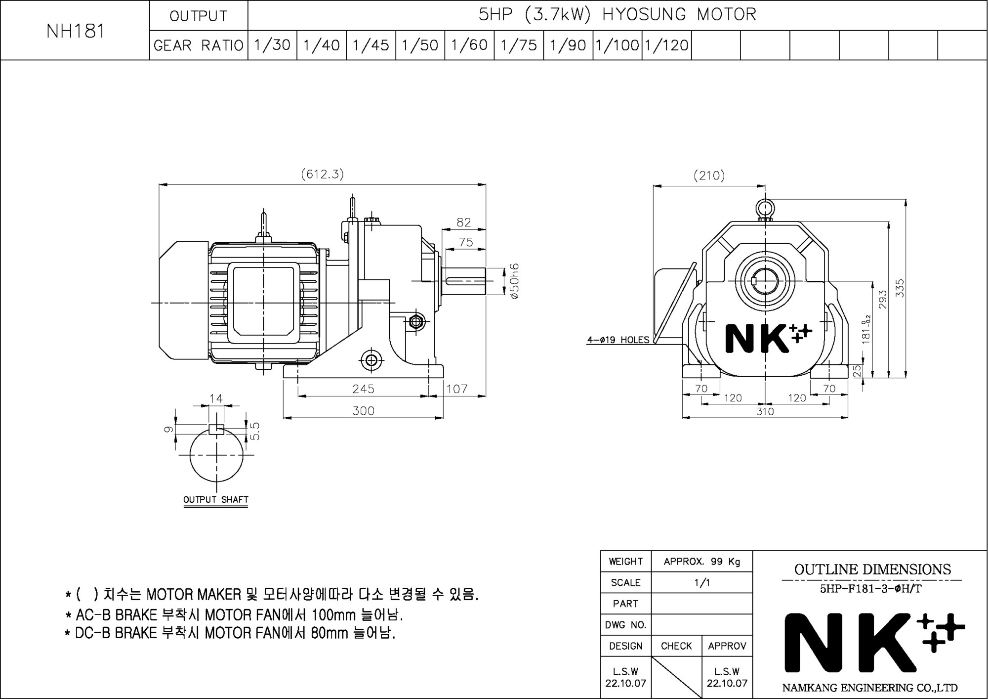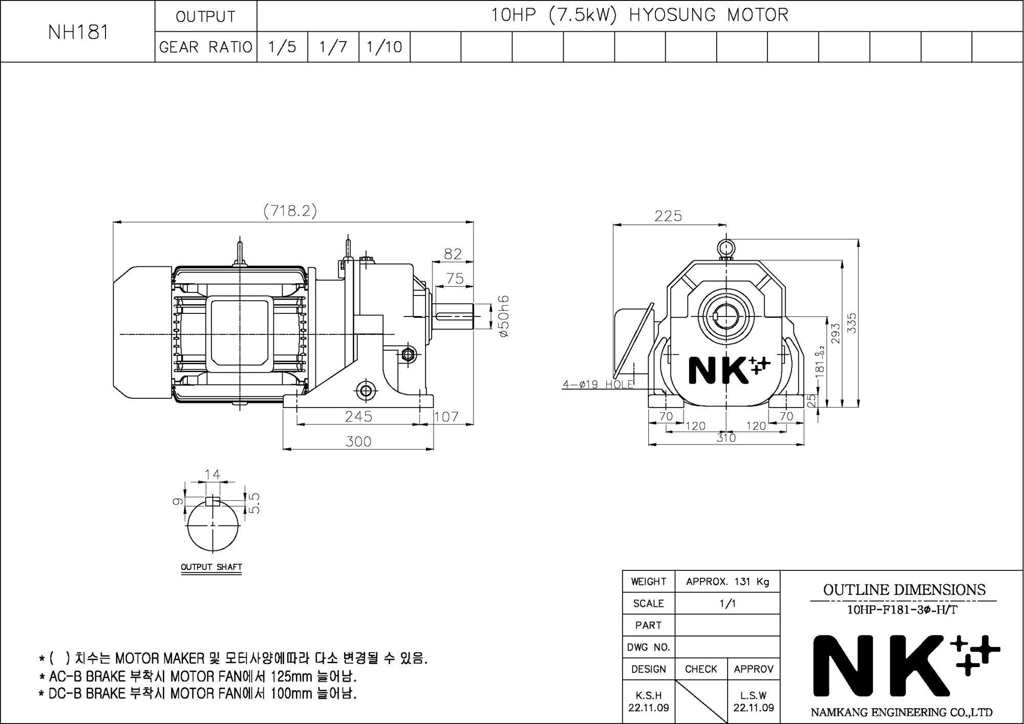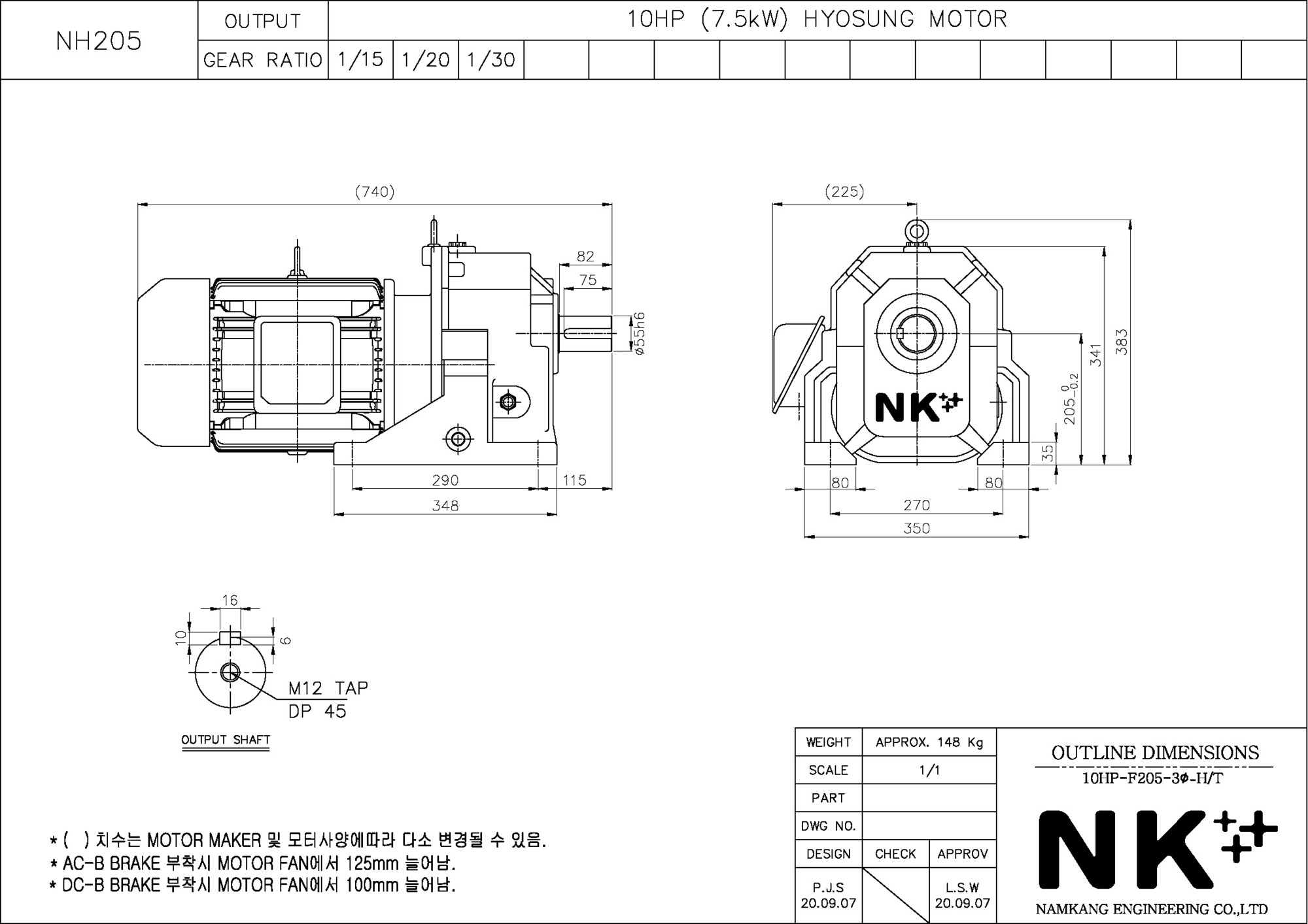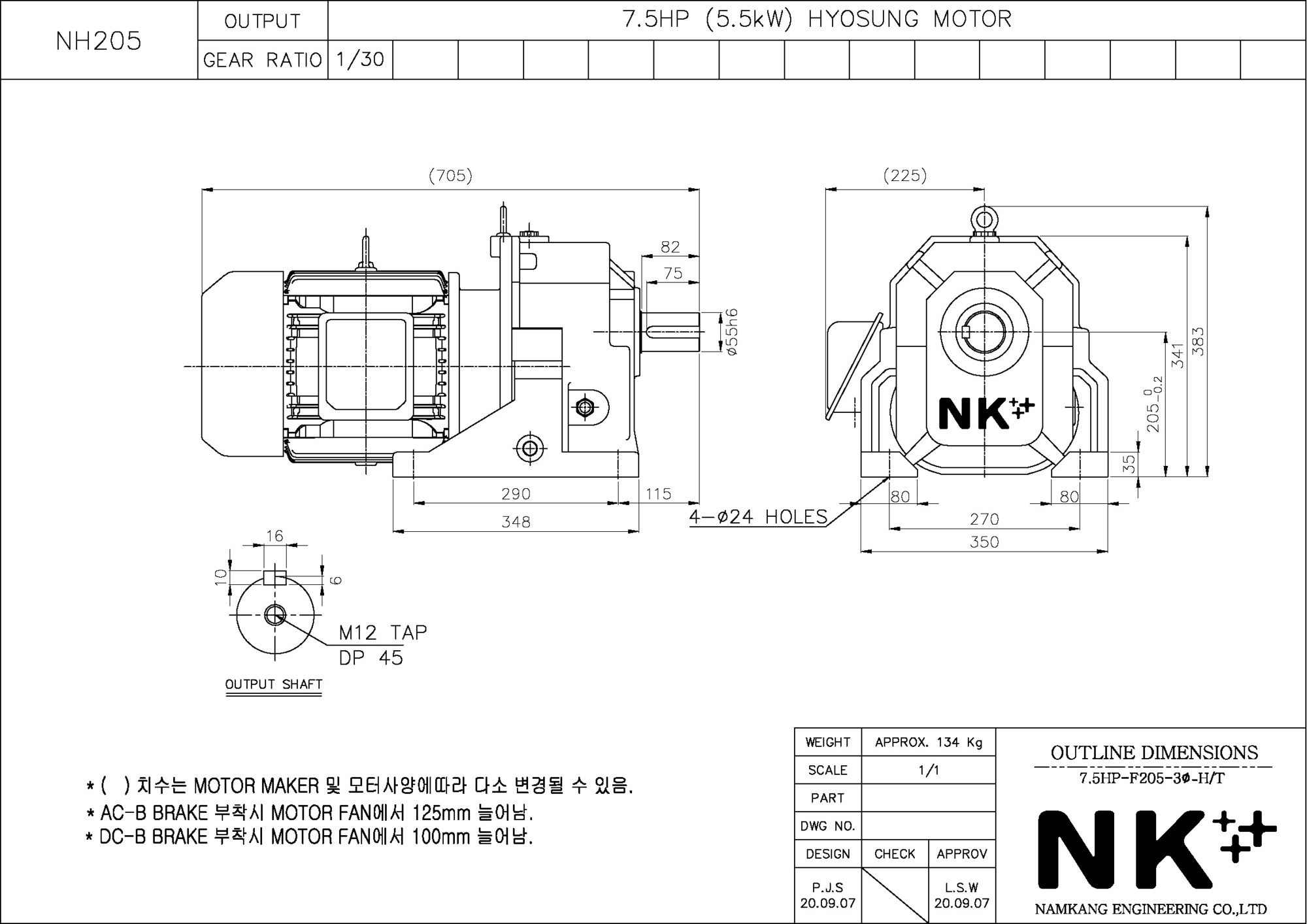- NK PLUS MOTOR (남강 자사모터), 효성모터, 하이젠모터 적용
